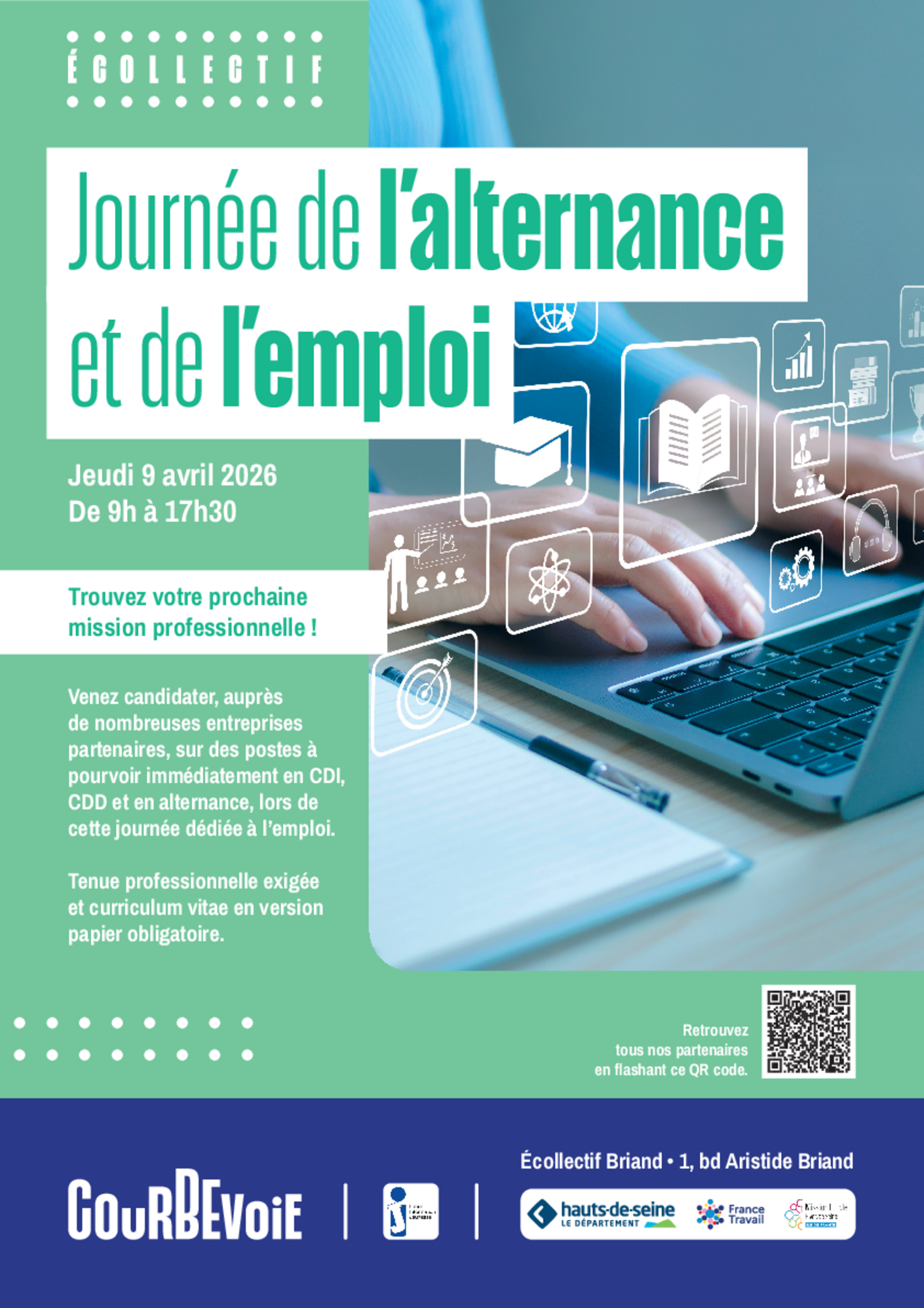 Jeudi 9 avril 2026 - De 9h30 à 12h00 et de 13h30 à 17h30 , Ecollectif Briand 1, boulvard Aristide Briand 92400 Courbevoie